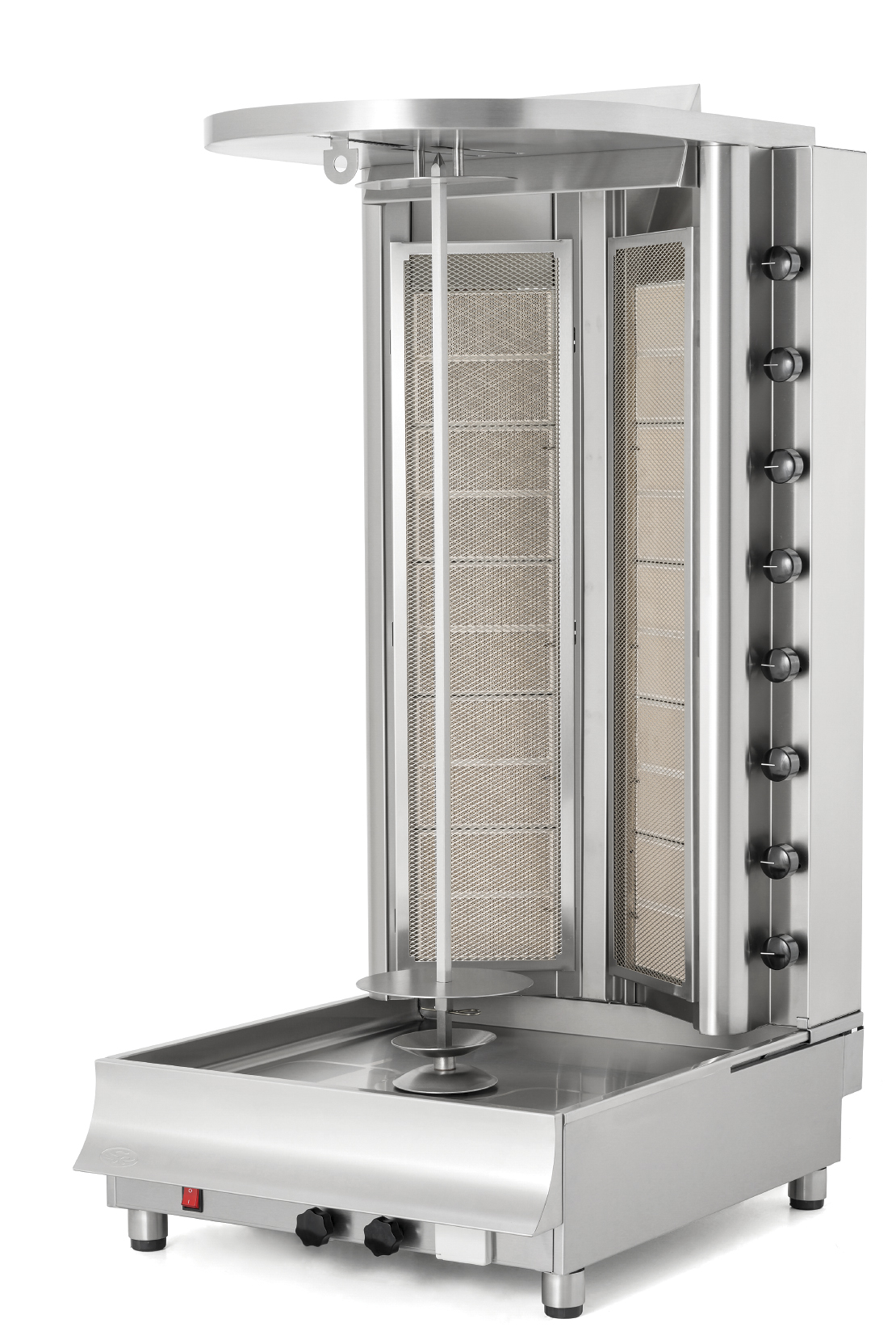 - Το σώμα του γύρου μετακινείται πάνω στη βάση εμπρός και πίσω για τη ρύθμισης της απόστασης μεταξύ κρέατος και καυστήρων.